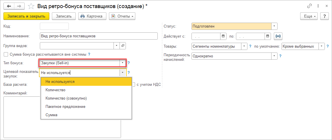 Ретро-бонусы поставщиков в зависимости от настройки могут быть: