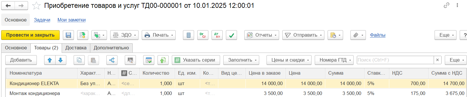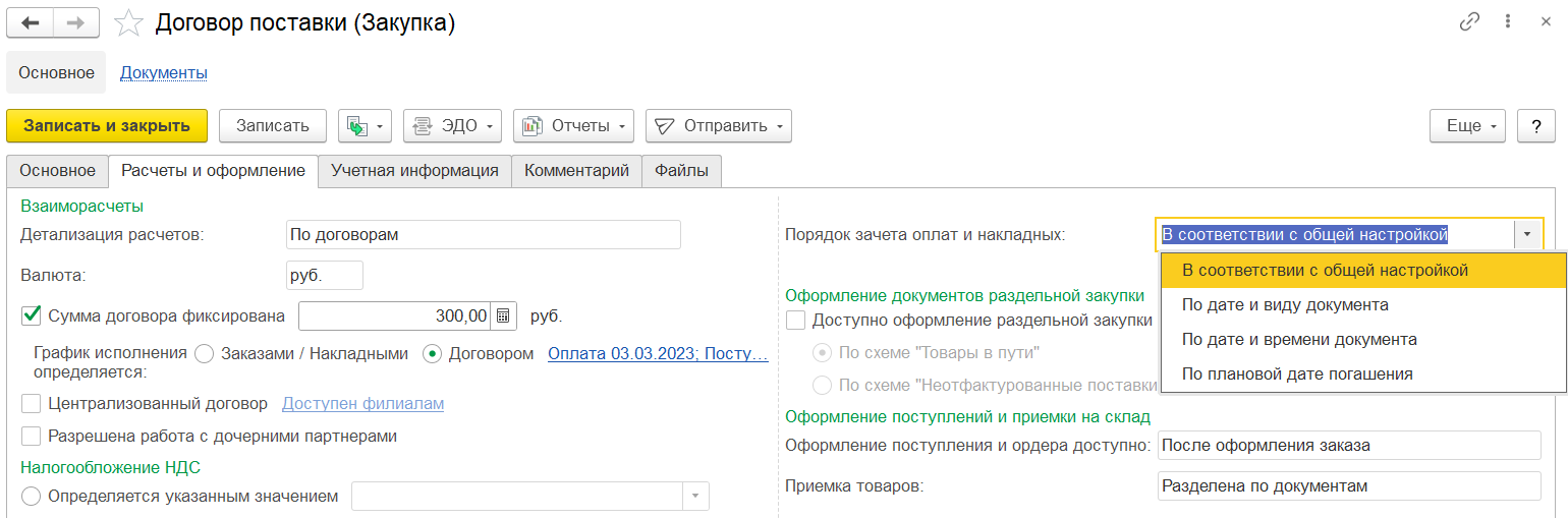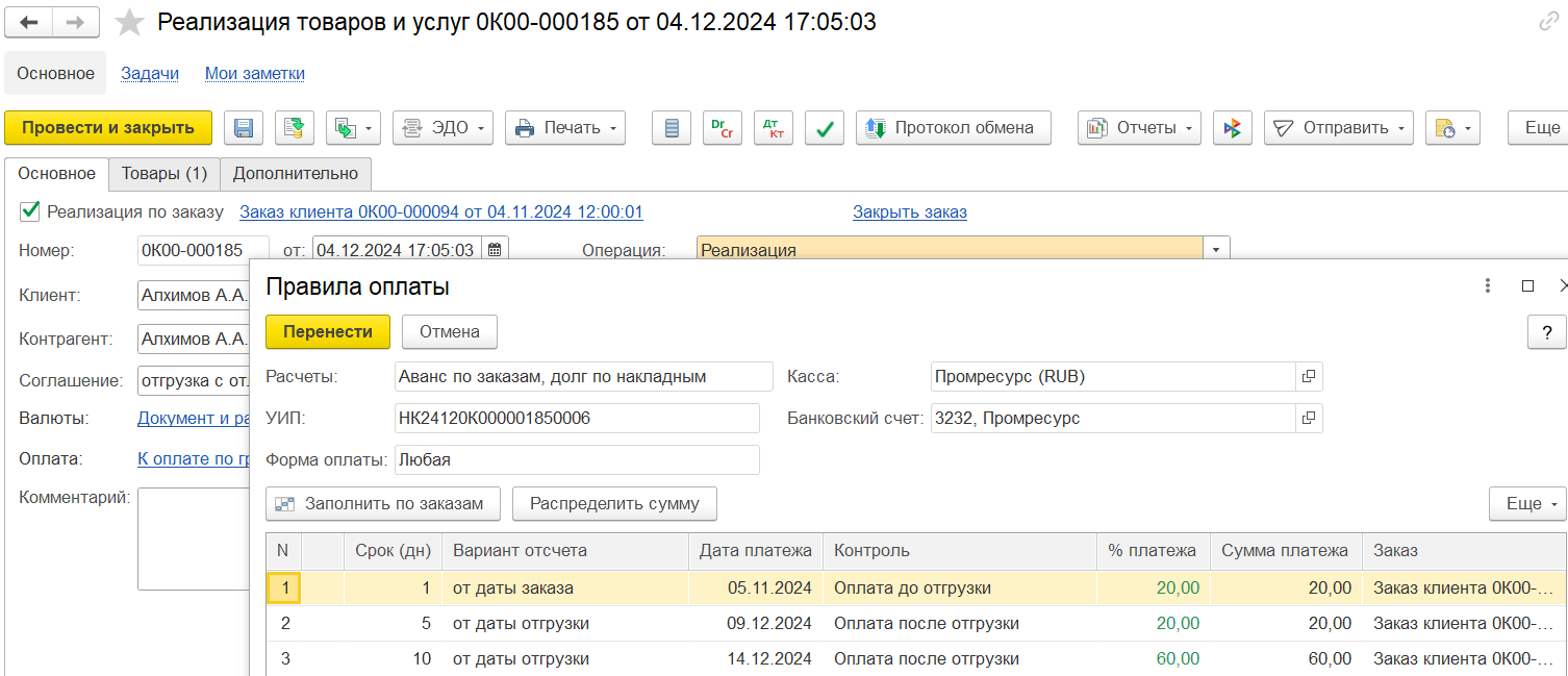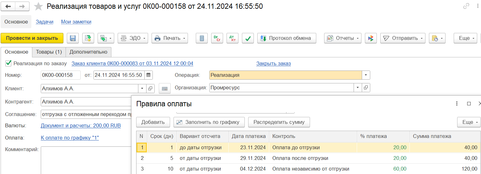 На закладке Основное вводятся основные реквизиты заказа: