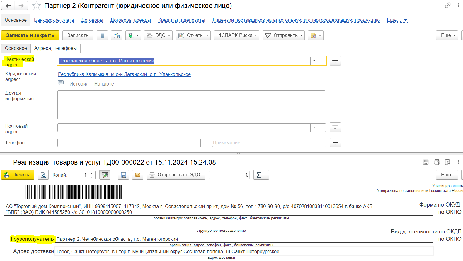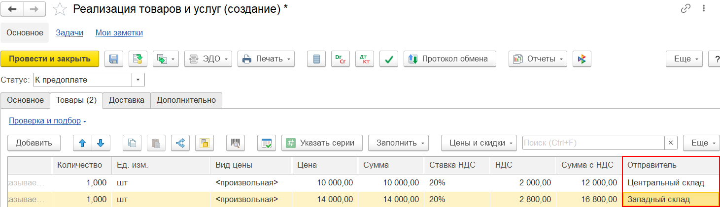 Симметричные данные по отправителю и получателю указываются в два столбца Отгрузка и Доставка.