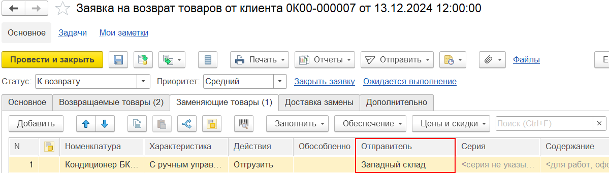 ■ Заявка на возврат товаров от клиента,
