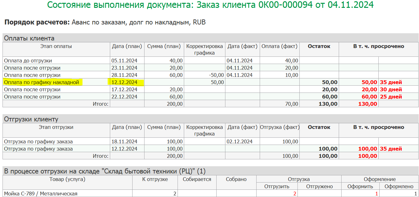 ■ Дата и время отгрузки