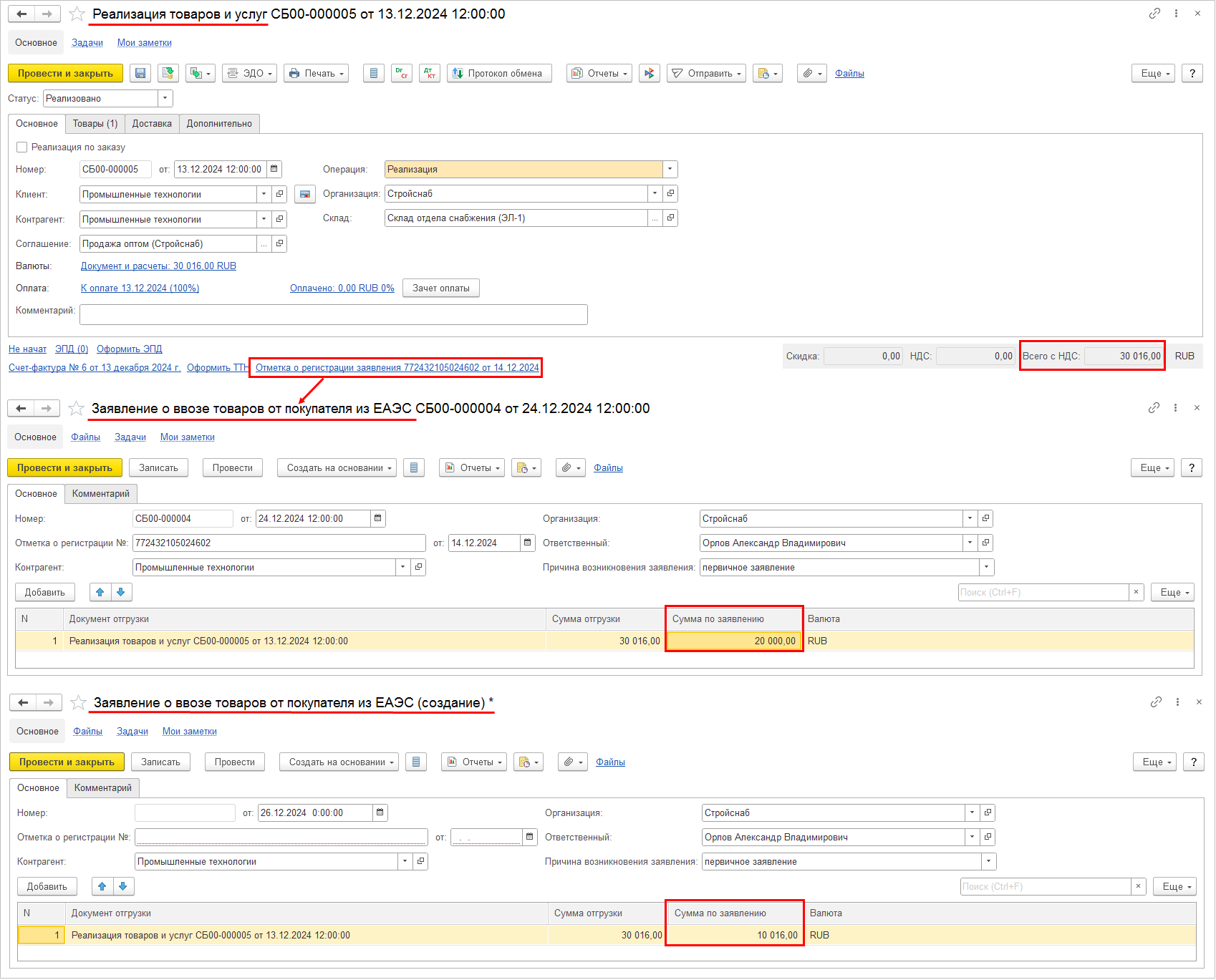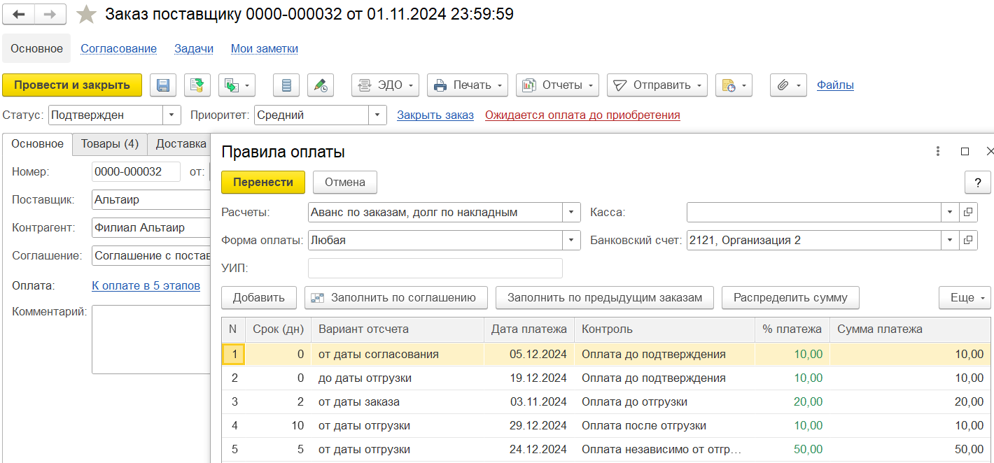 Также заказ может быть создан на основании документов:
