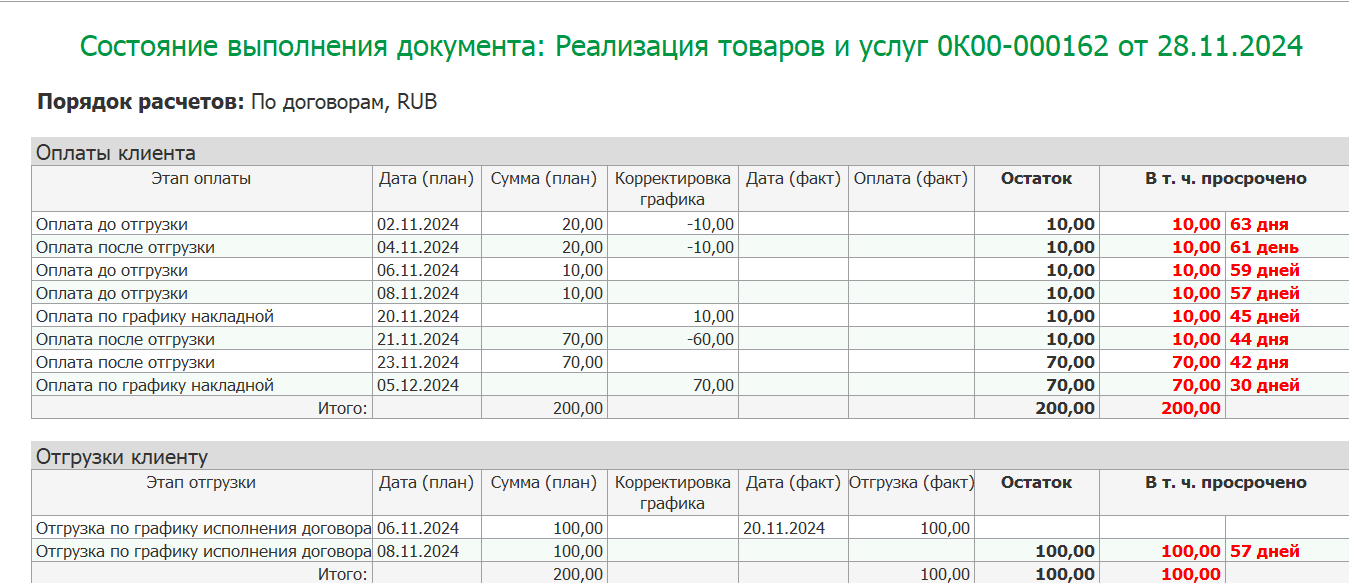 В режиме В отчете выводится таблица с указанием расхождений.