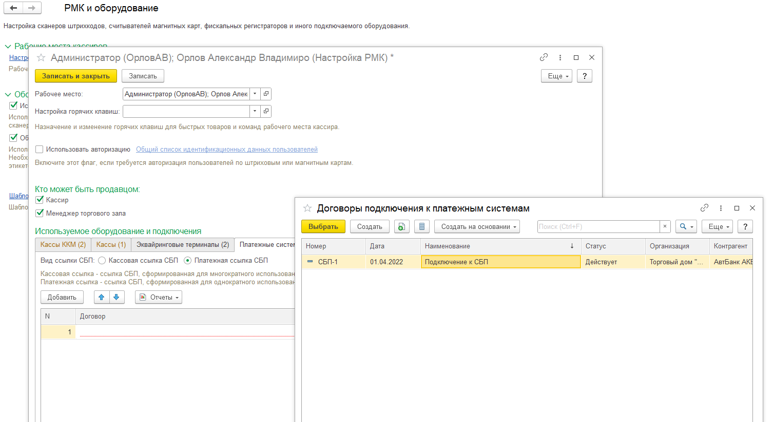 На стороне 1С:РМК посоле загрузки данных из управляющей информационной системы создаются элементы в справочника Виды оплат. Вид оплаты является дополнительным измерением, которое дает возможность понять, с каким банком и по какому именно договору подключения была получена оплата через СБП
