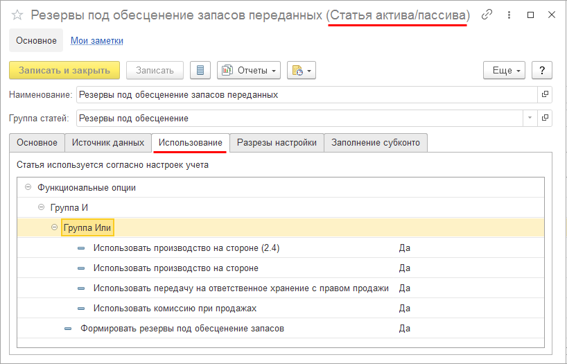 Доступные значения определяются установкой функциональных опций и настройками. В частности: