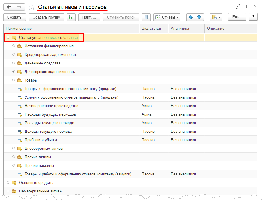 ■ колонки Аналитика 1 – Аналитика 6 доступны в зависимости от количества используемых аналитик;