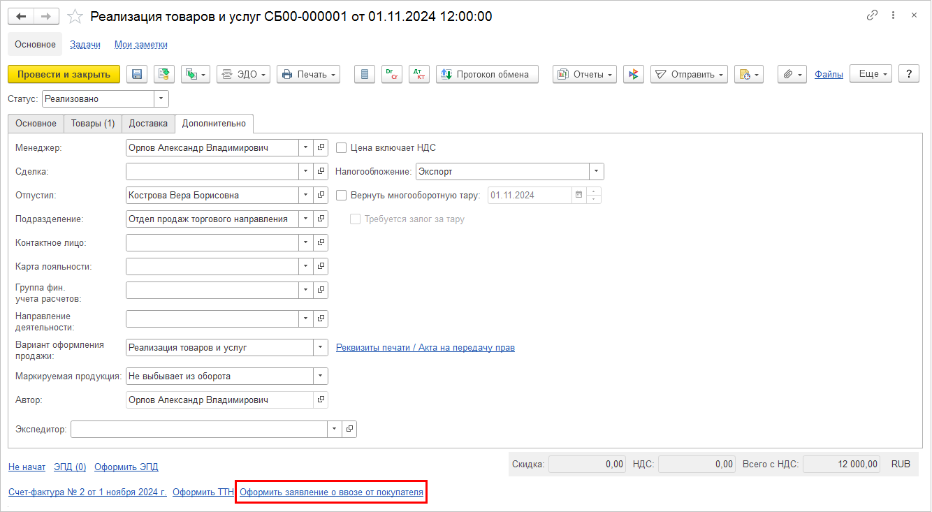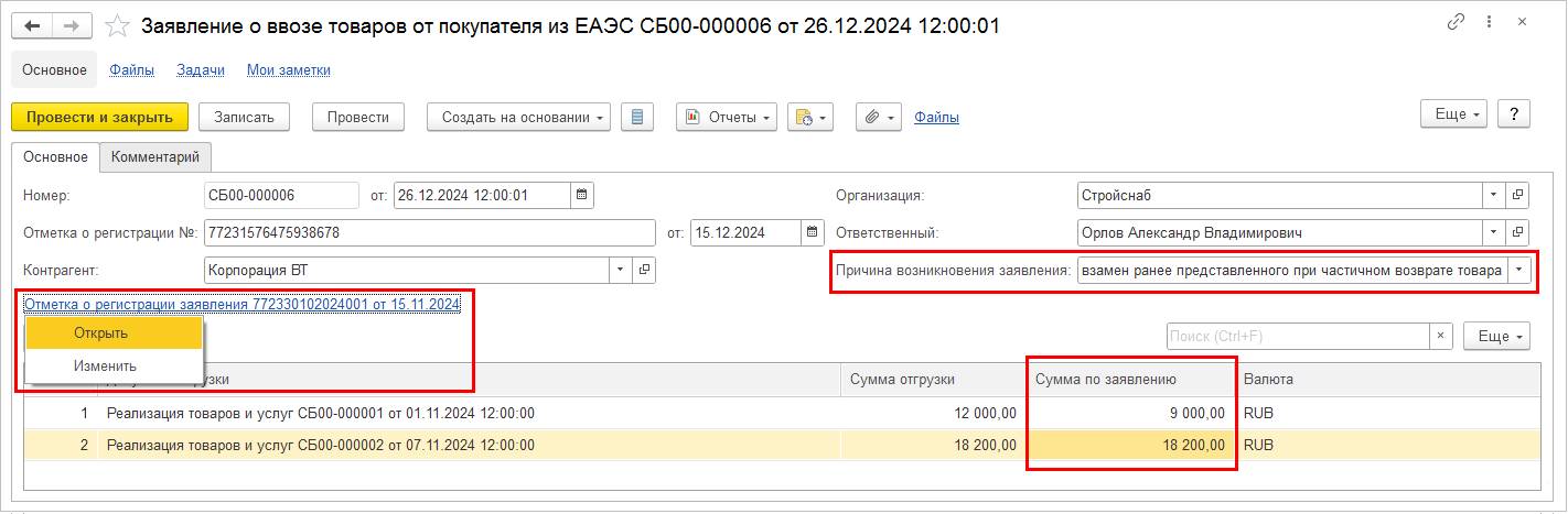 По кнопке Завершить автоматически будет создан электронный документ (при необходимости) и открыта форма электронного документа.
