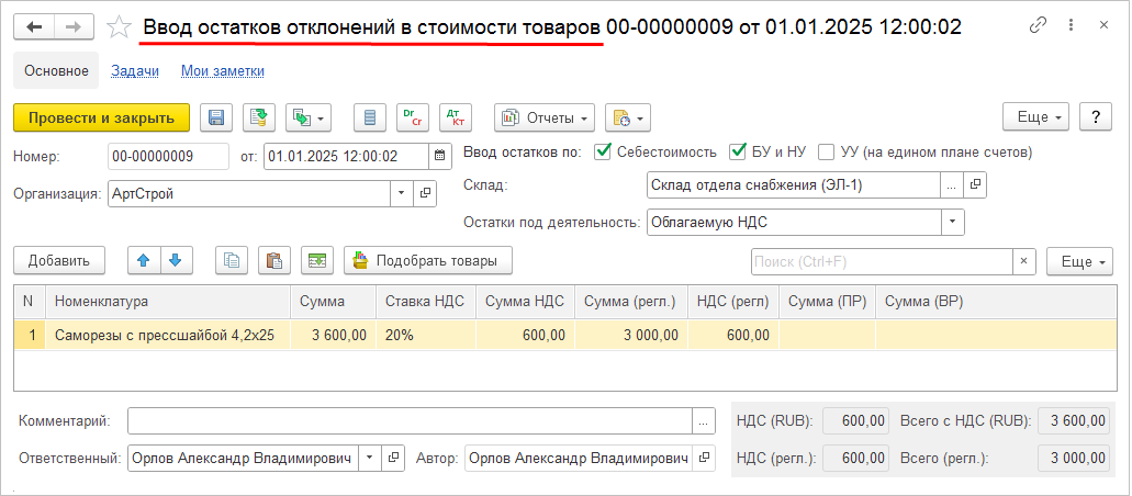 Для фиксации, согласования и отработки расхождений используется документ Акт о расхождениях после поступления / возврата.
