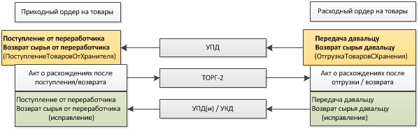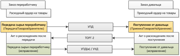 Для фиксации, согласования и отработки расхождений, выявленных после передачи сырья переработчику, используется документ Акт о расхождениях после передачи.