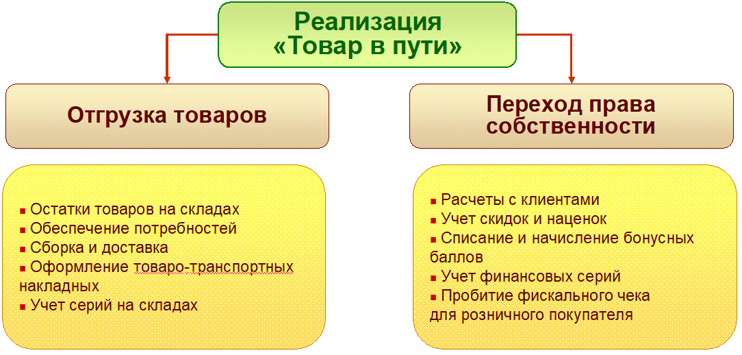 Поддерживается два варианта ведения учета отгрузки с отложенным переходом права собственности (товары в пути):