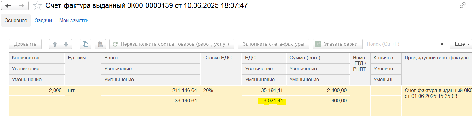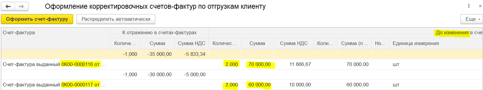 После распределения количества и суммы к отражению в счетах-фактурах: