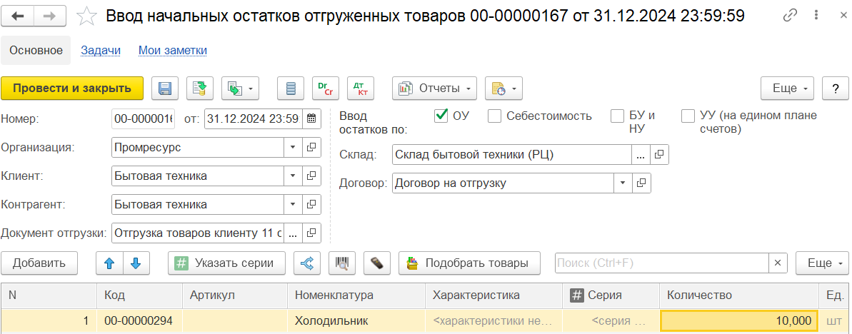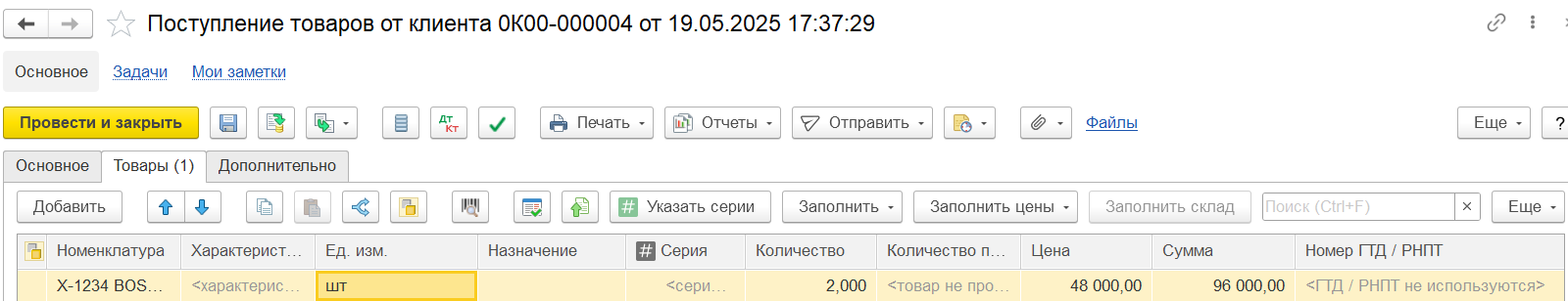 Для документа Поступление товаров от клиента действуют те же особенности, что и для документа Отгрузка товаров клиенту: