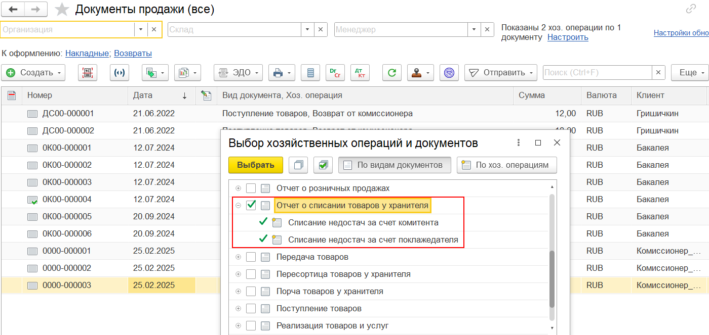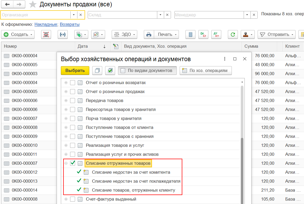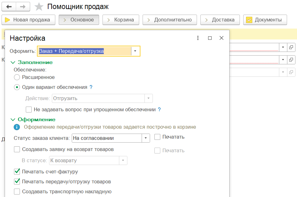 Особенности документа Отгрузка товаров клиенту: