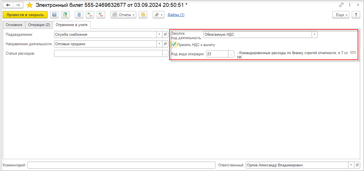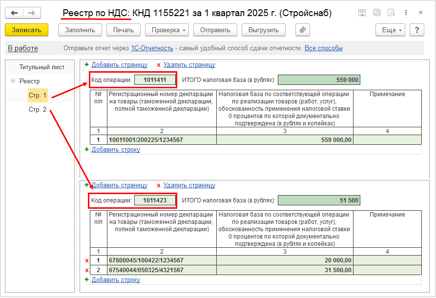 Поддержано заполнение реестров по НДС в разрезе кодов операций.