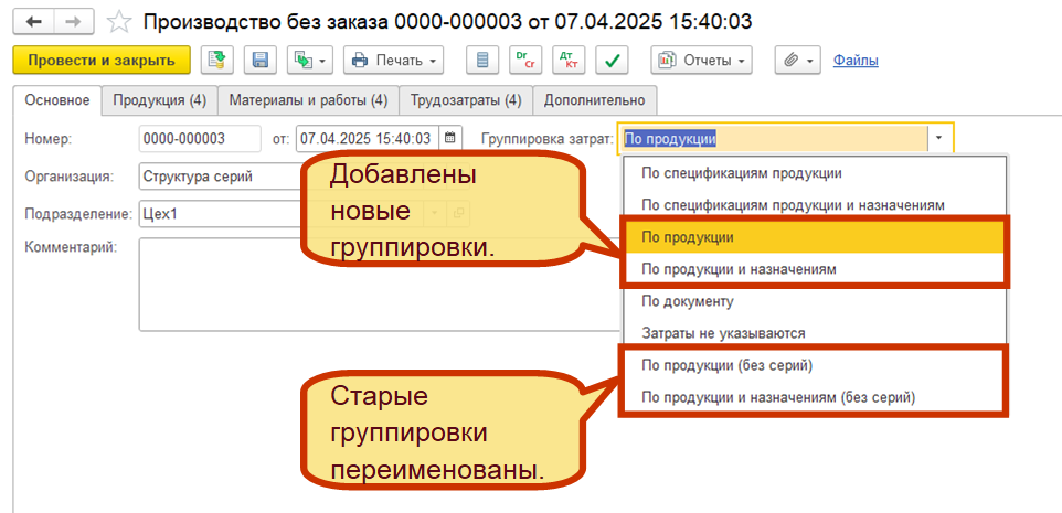 Заказ поддерживает работу с разными типами номенклатуры «Товар», «Работа», «Услуга», «Тара», «Набор». В одном заказе можно указать услуги, работы, товары, но отгрузку с отложенным переходом права собственности можно оформить только для типа номенклатуры «Товар», «Набор». Использование типов номенклатуры «Услуга»/«Работа» возможно только при оформлении обычной реализации. То есть в заказе можно указать товары, которые могут быть реализованы как путем оформления обычной реализации, так и путем оформления отгрузки с отложенным переходом права собственности.