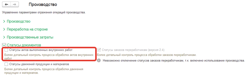 Опции Использовать отгрузку без перехода права собственности (версия 2.5), Использовать отгрузку без перехода права собственности (версия 2.0) техногенные и не предусмотрены в пользовательском интерфейсе.