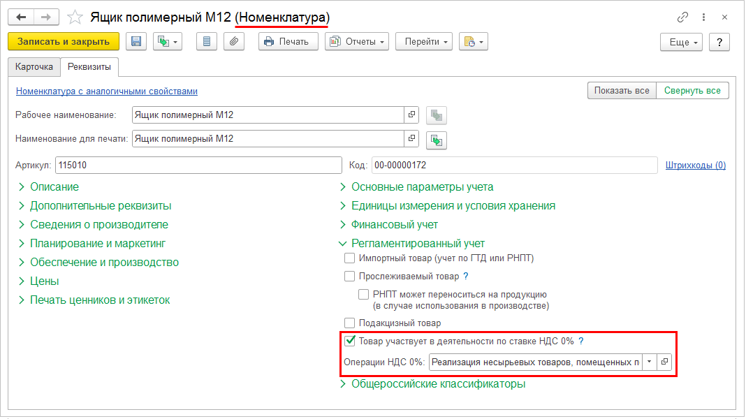 Есть коды операций по реализации со ставкой НДС 0%, зависящие от страны реализации, которая не всегда совпадает со страной регистрации контрагента. Для определения страны реализации в документы Реализация товаров и услуг и Реализация услуг и прочих активов добавлено поле Страна реализации. Поле Страна реализации доступно, если в документе выбрано налогообложение Экспорт или Облагается НДС в стране ЕАЭС (не РФ). По умолчанию страна реализации равна стране регистрации контрагента.