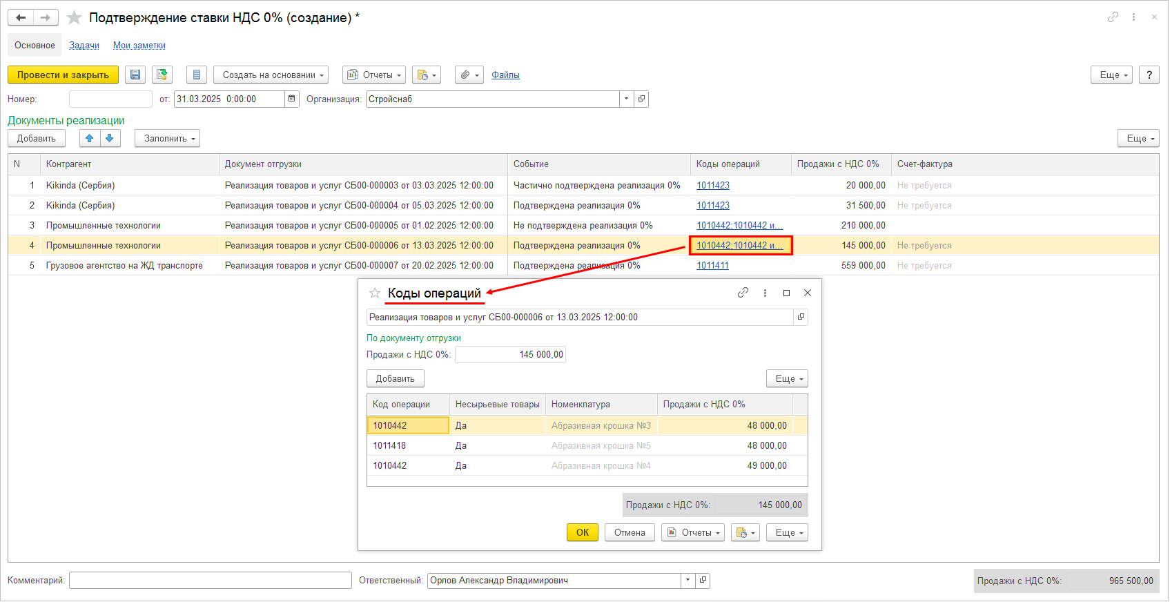 Есть коды операций по реализации со ставкой НДС 0%, зависящие от отношений взаимозависимости контрагента и организации. Если контрагент взаимозависим от организации, то необходимо в списке Взаимозависимые лица создать запись с определением типа взаимозависимости. Для удобства заполнения информации о взаимозависимости в карточку элемента списка Контрагенты добавлена гиперссылка Взаимозависимые лица. Гиперссылка доступна, если в информационной базе включена функциональная опция Контролируемые сделки (меню НСИ и администрирование – Настройка НСИ и разделов – Регламентированный учет - Отчетность).
