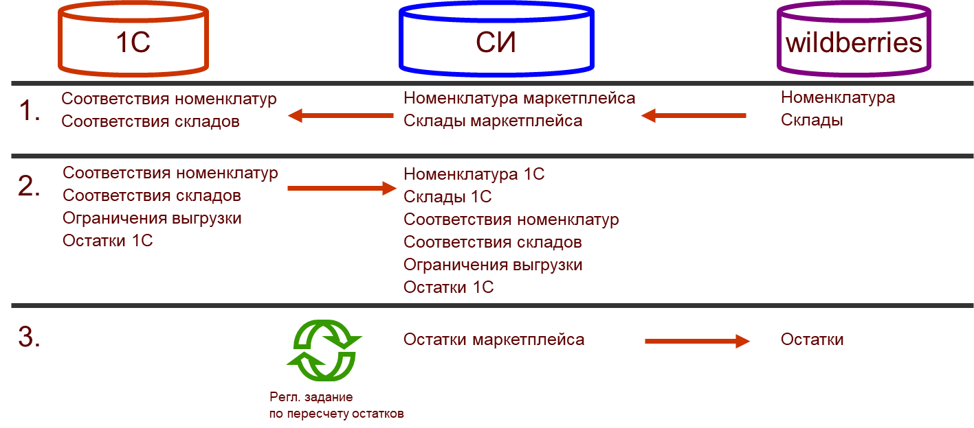 Итоговый остаток для выгрузки в маркетплейс рассчитывается в СИ по данным остатков 1С: