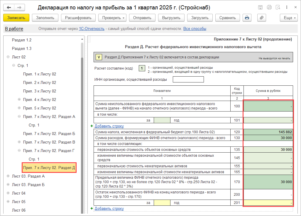 Расчет ФИНВ отражается в Разделе Д Прил. 7 к Листу 02