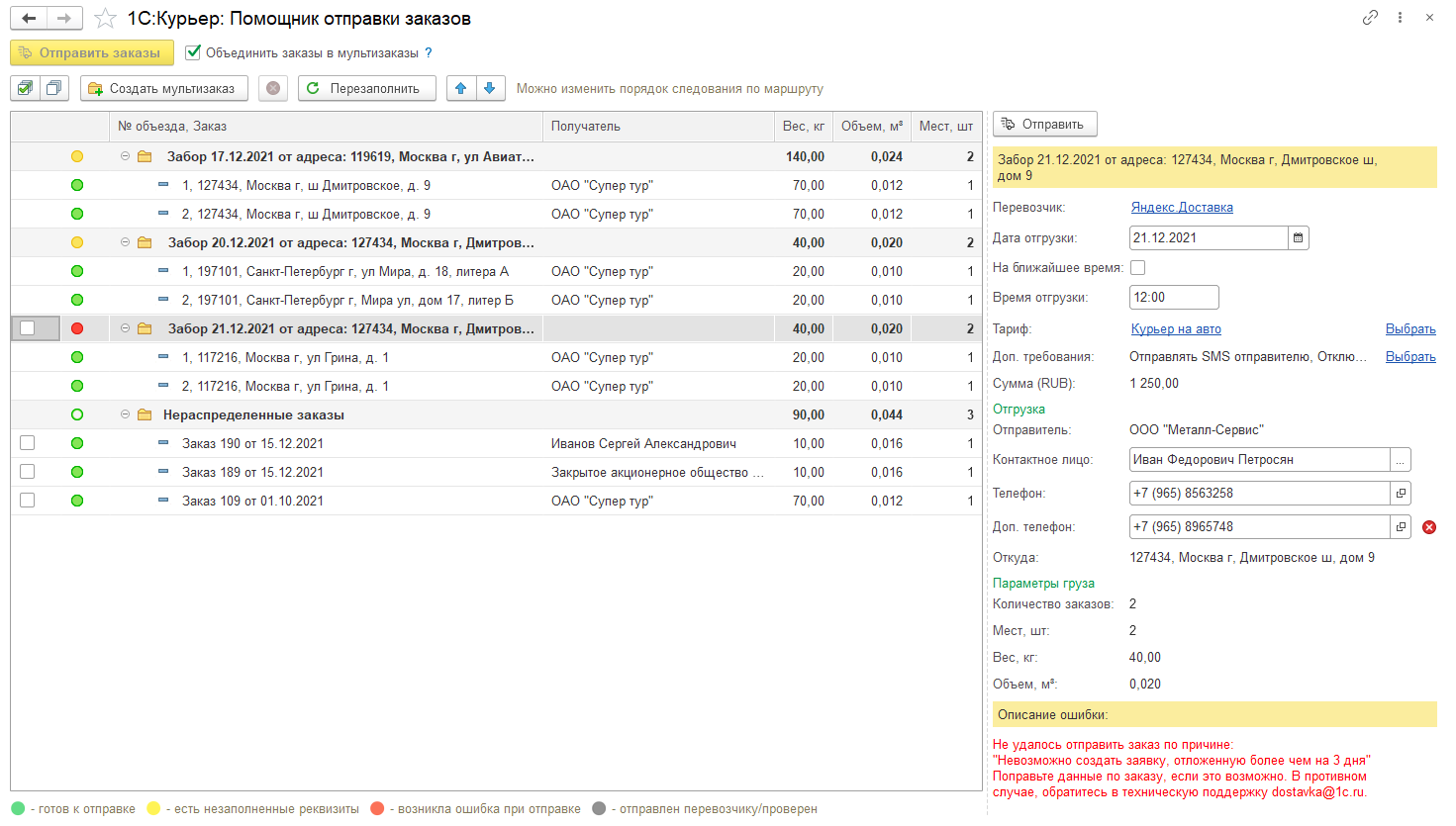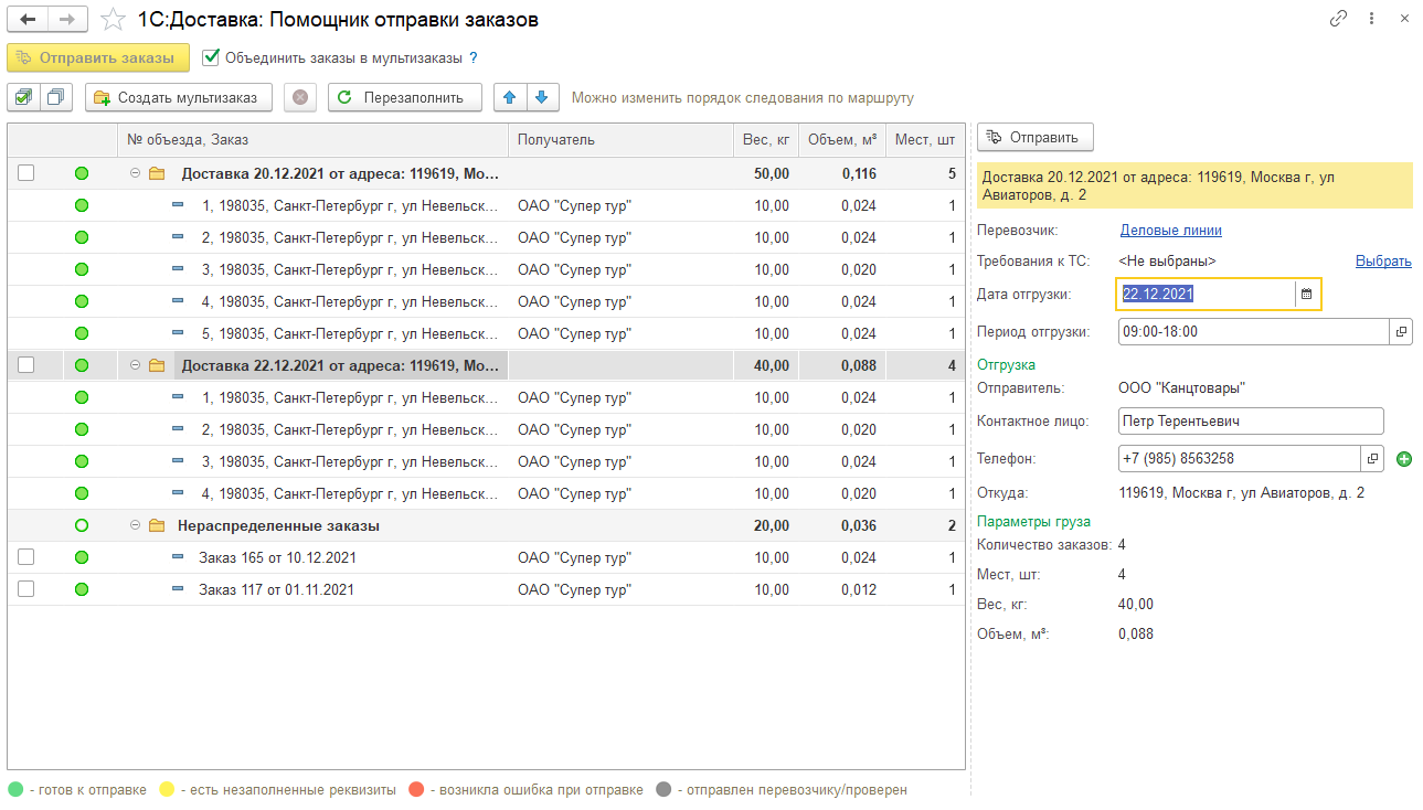 После успешной отправки перевозчику мультизаказов редактирование их состава не предусмотрено. В этом случае потребуется отменить весь мультизаказ, внести требуемые изменения в отдельные заказы и сформировать мультизаказы заново.