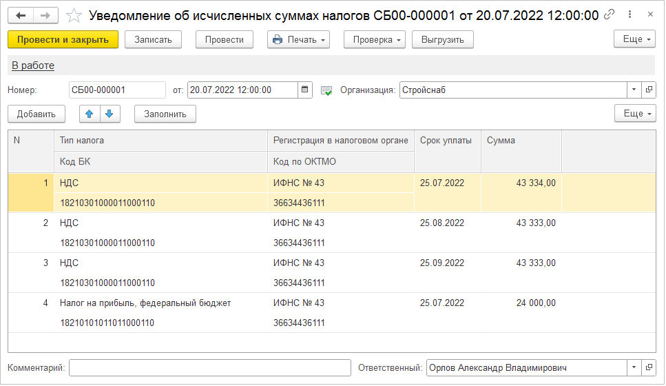 Разработана функциональность для учета расчетов с бюджетом по ЕНП на отдельном счете плана счетов, а также формирования и отправки в ФНС уведомления об исчисленных суммах налогов, авансовых платежей по налогам, страховых взносов.