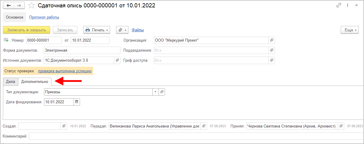 В новой версии программы можно использовать дополнительные реквизиты для работы со Сдаточной описью и Уничтожением дел.