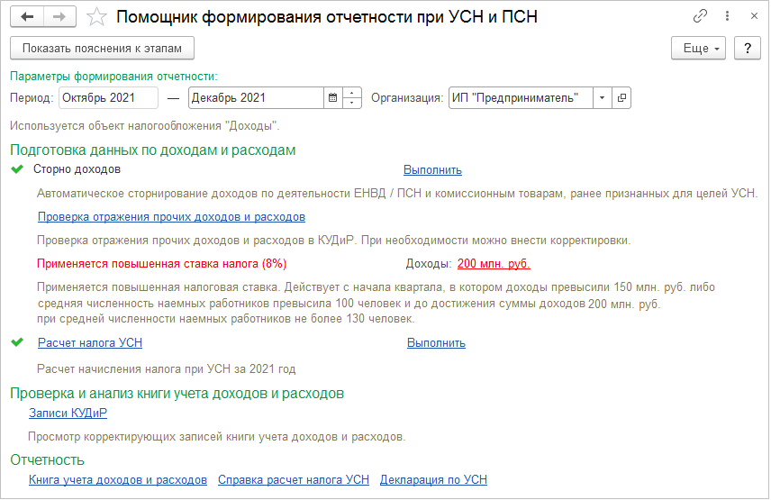Помощник по УСН/ПСН) дополнено сведениями о применяемой ставке налога УСН и