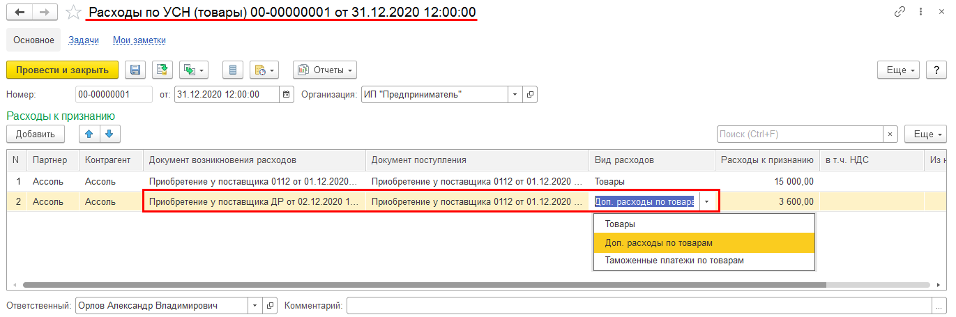операциями Расходы по УСН (товары) и Расходы по УСН (материалы) добавлено: