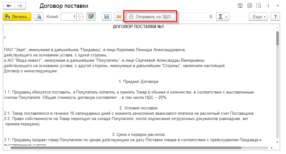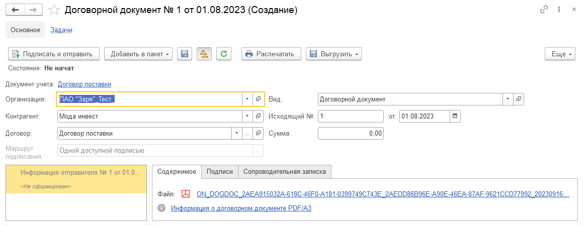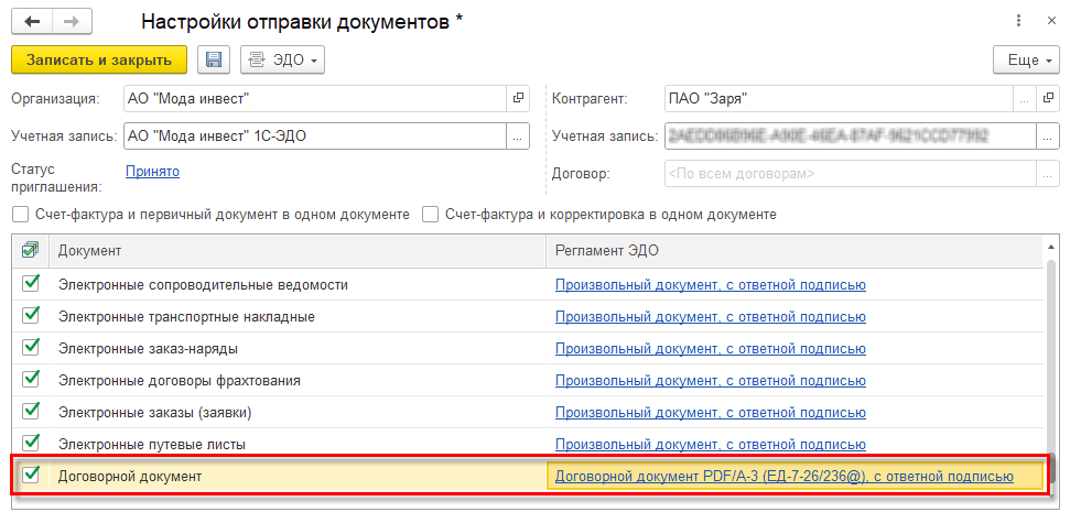 Учитывая, что любая сторона может являться и отправителем, и получателем договора, для каждой организации имеет смысл сделать настройки отправки и получения.