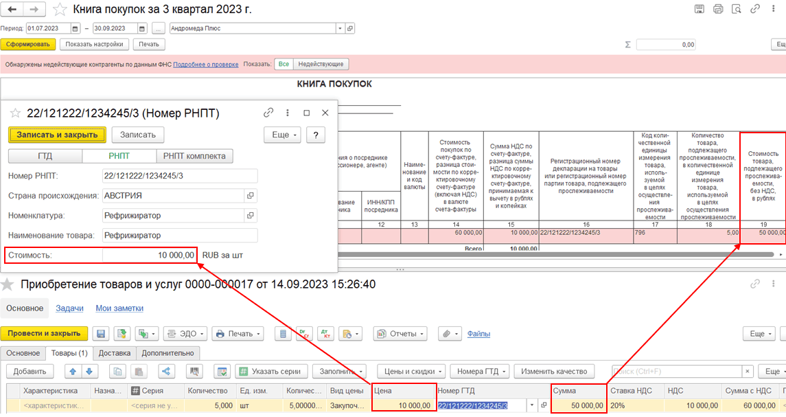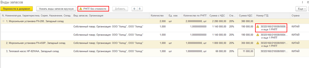 В форму элемента справочника Номера ГТД для типа номера ГТД РНПТ/РНПТ комплекта добавлены реквизиты: