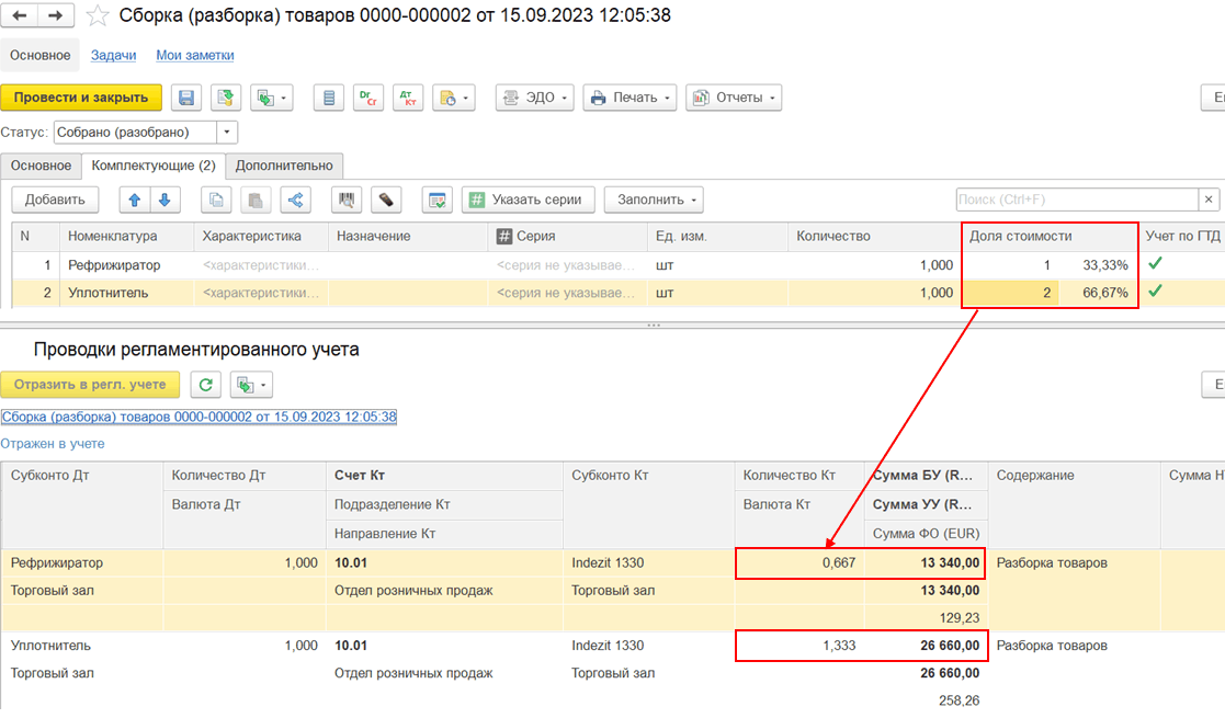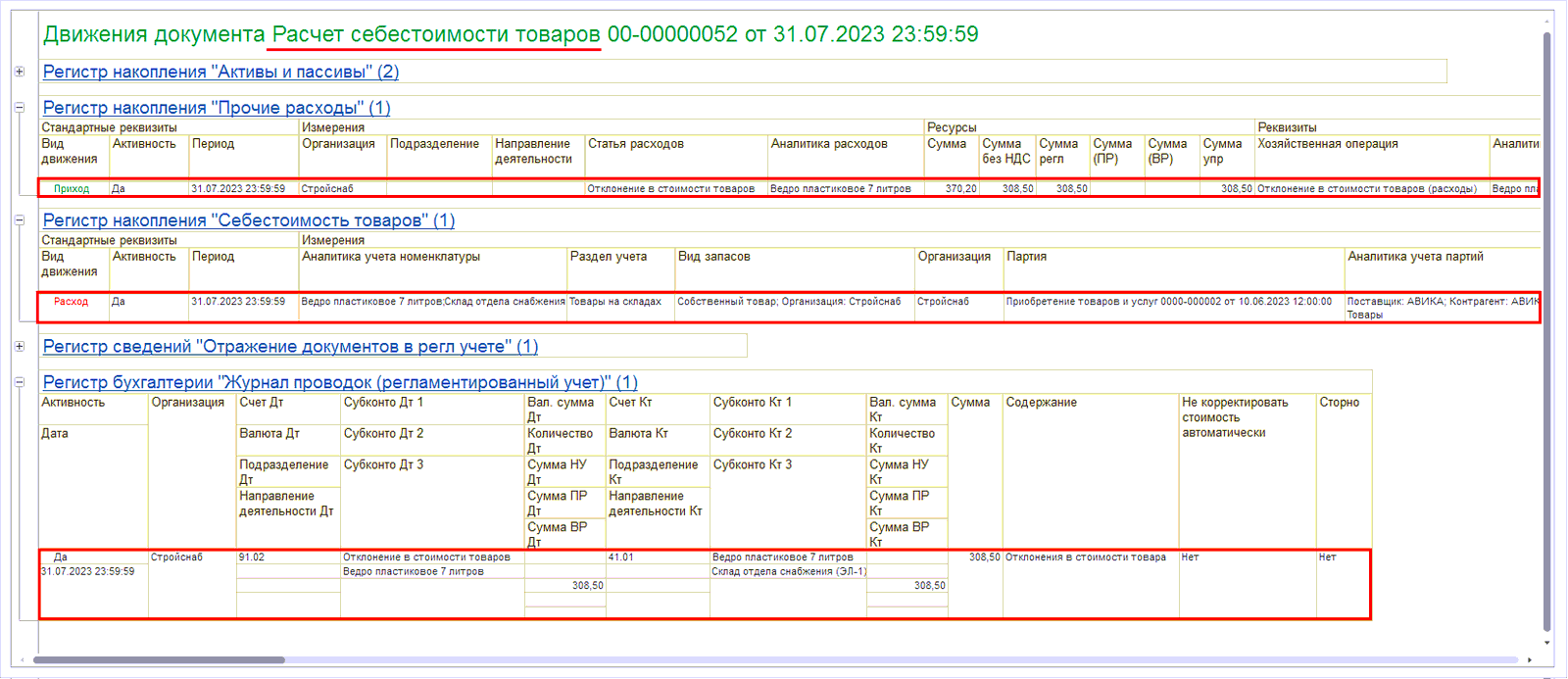 При отражении документа Расчет себестоимости товаров в регламентированном учете формируются проводки вида: