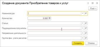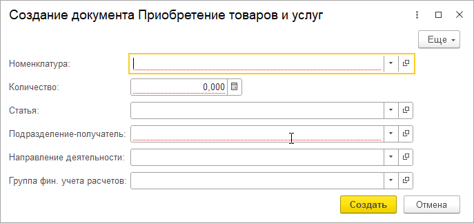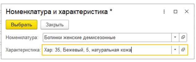 Форма быстрого сопоставления позволяет сразу указать номенклатуру и характеристику: