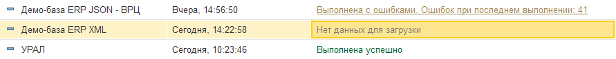 При выполнении загрузки, если в каталоге отсутствуют файлы, загрузка получает состояние “Нет данных для загрузки”: