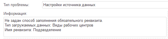 Добавлена проверка корректности настройки обязательных полей Источника. В случае, если настройка обязательного реквизита не задана, регистрируется ошибка настройки источника и загрузка прерывается: