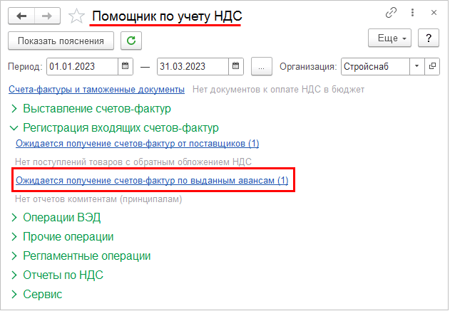 В рабочее место Помощник по учету НДС добавлена проверка необходимости регистрации счетов-фактур на аванс по договорам аренды.