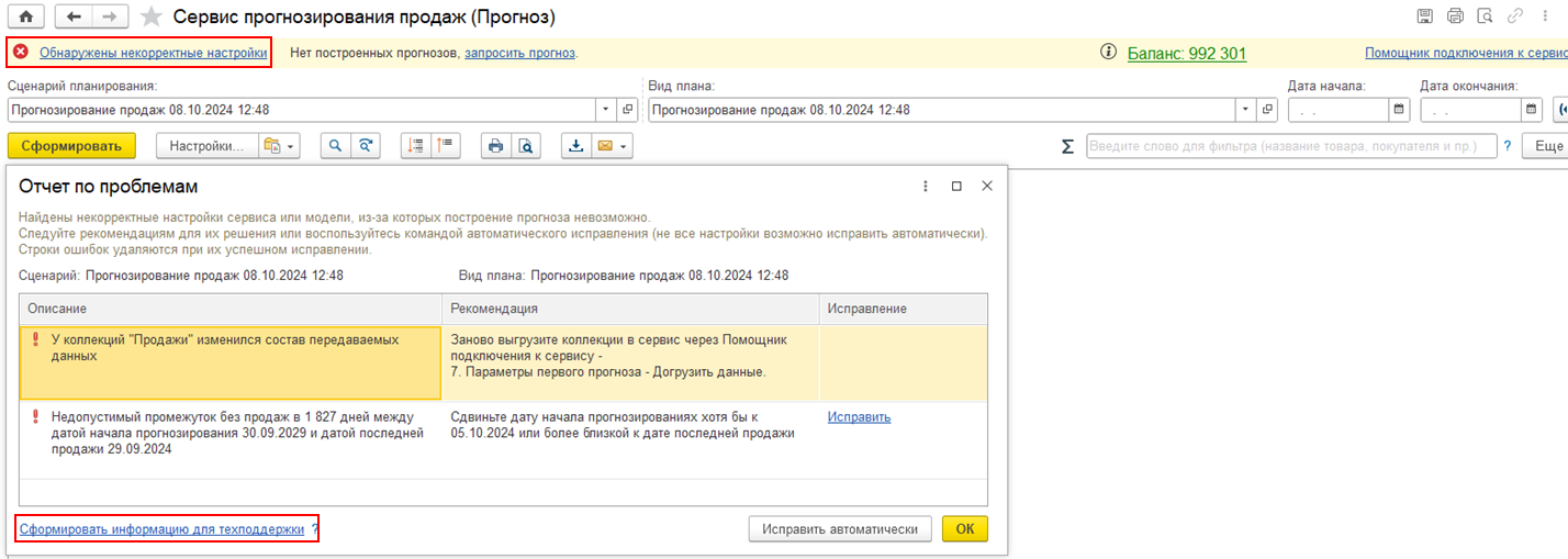Добавлены дополнительные проверки по корректности настроек сервиса прогнозирования и вида плана.
