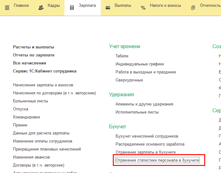 Реализована синхронизация документа "Отражение статистики персонала в бухучете" при использовании классического формата обмена (ранее было реализовано только для нового универсального обмена).