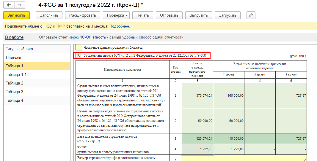Для организаций инвалидов проставляется соответствующий флажок над таблицей 1, а в её строку 4 заполняются только суммы инвалидов.
