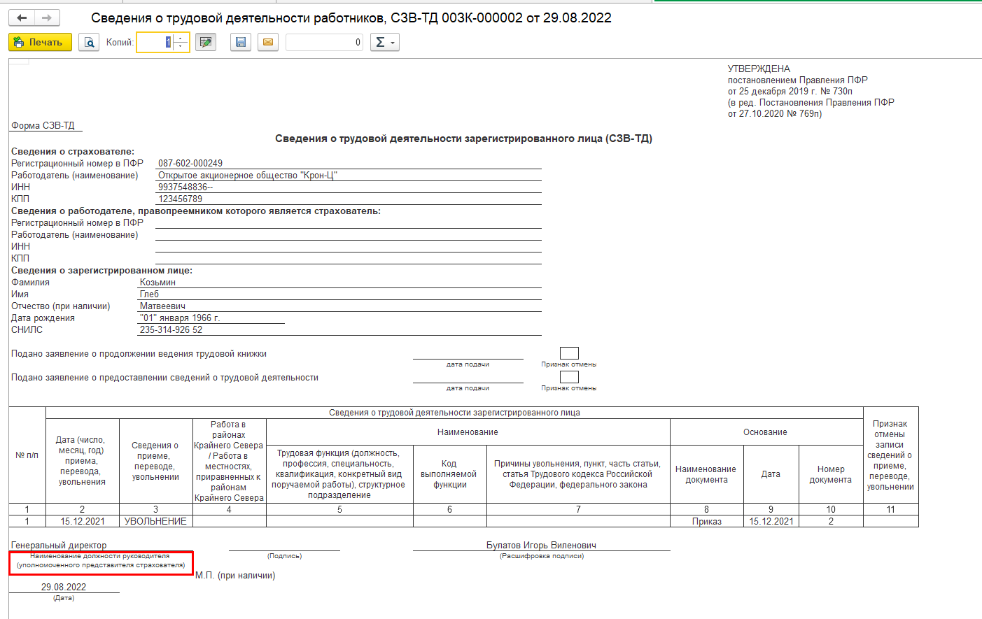 Обновлены печатные формы СЗВ-ТД, ОДВ-1, СЗВ-СТАЖ, СЗВ-КОРР, СЗВ-ИСХ, ДСВ-3 с 19.08.2022, согласно Постановлению Правления ПФР от 21.04.2022 № 62п.