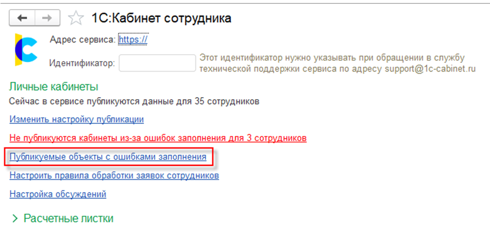 Выполнены доработки интеграции с сервисом 1С:Кабинет сотрудника.