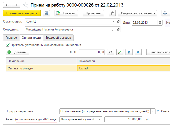 Ведомости на выплату аванса с датой после 01.01.2023 не заполняется сотрудниками, для которых были указаны способы расчета аванса фиксированной суммой и процентом от тарифа. Начисление за первую половину месяца с 2023 года заполняется всеми сотрудниками, независимо от ранее указанного способа расчета аванса.
