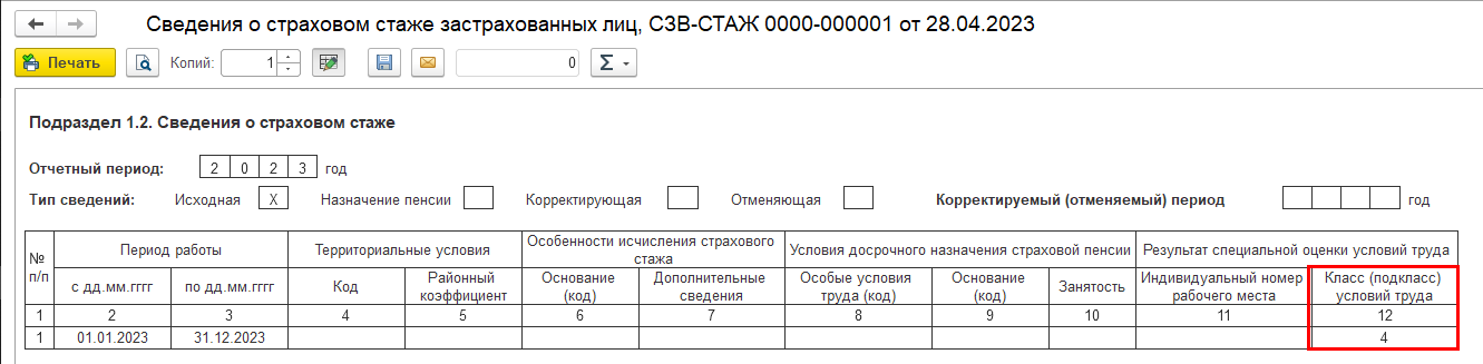 Реализовано заполнение класса условий труда в подразделе 1.2 раздела 1 формы ЕФС-1 (бывшая СЗВ-СТАЖ).
