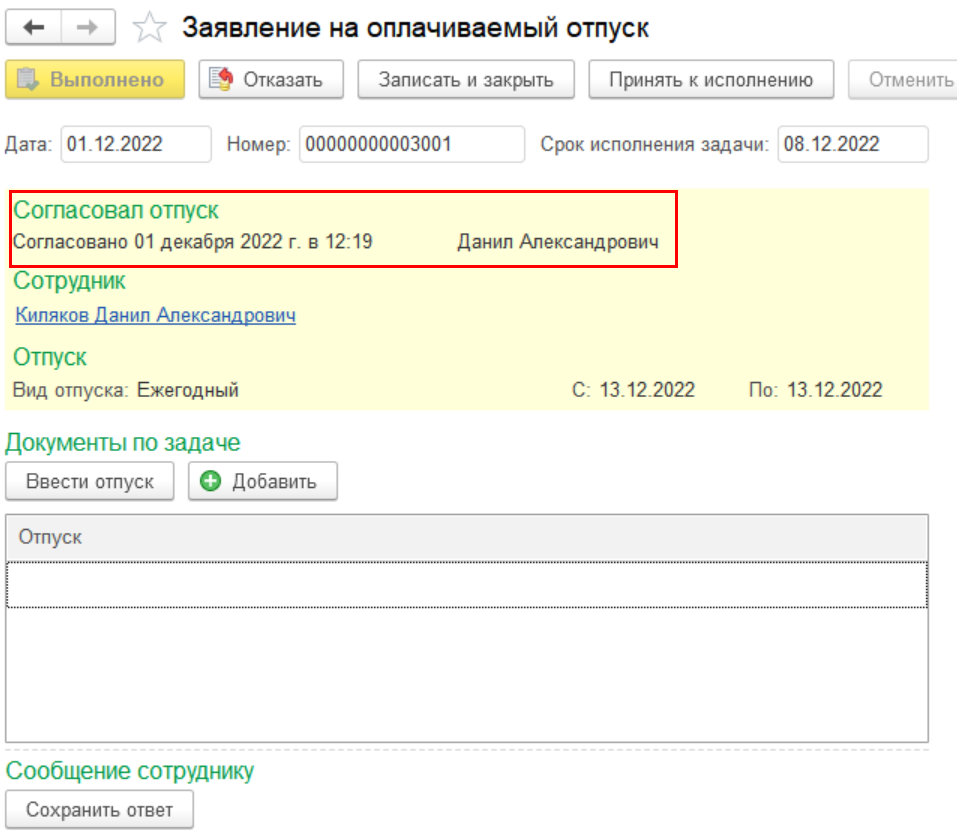 Реализовано отображение в заявке списка всех её согласовавших (например, руководителя для заявок на отпуск и отсутствие).