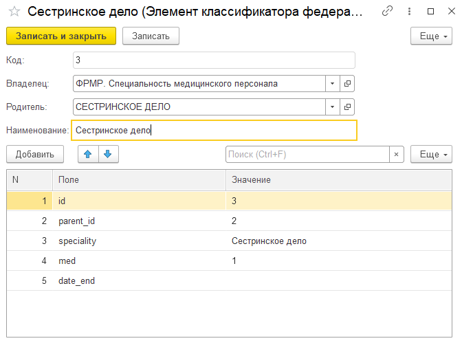 Выбрав строку элемента классификатора, можно увидеть значения всех его полей, как они представлены в оригинальном классификаторе: