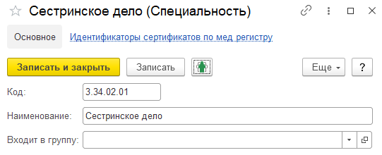 Если ей воспользоваться, появится форма для задания соответствия элемента справочника всем подходящим классификаторам НСИ Минздрава: