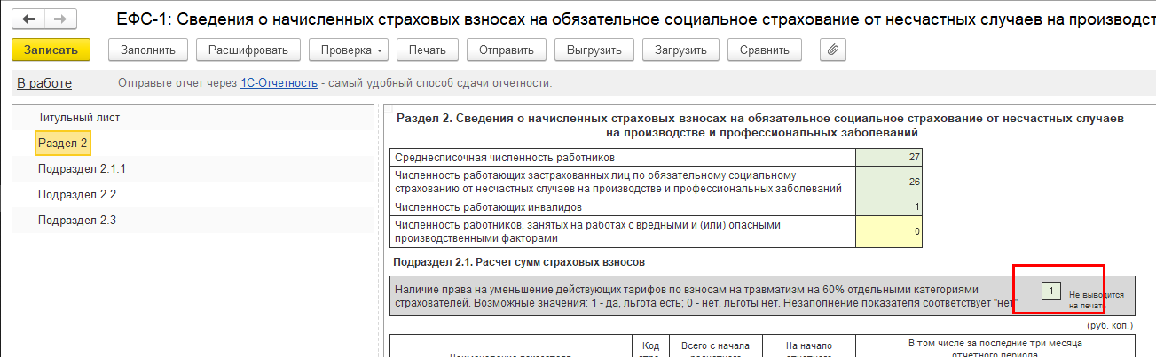 Реализовано автоматическое заполнение признака наличия льготы 60% в подразделе 2.1 Формы ЕФС-1.