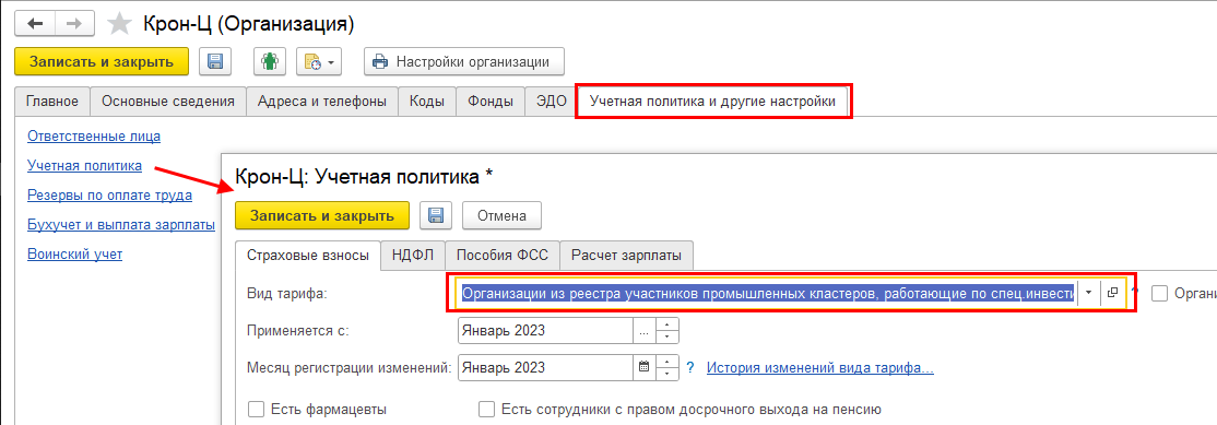 Добавлен новый тариф страховых взносов "Организации из реестра участников промышленных кластеров, работающие по спец.инвестиционным проектам", в соответствии с Федеральным законом от 18.03.2023 № 64-ФЗ и Письмом ФНС России от 21.03.2023 № БС-4-11/3237@.