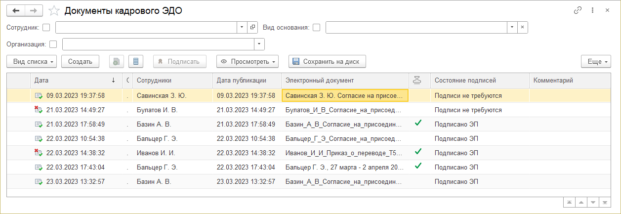 Повышено удобство работы со списком документов КЭДО.