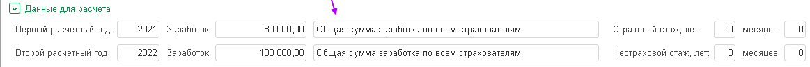Переключатель выведен на форму, т.к. в новой версии спецификации в расчетных годах появилось поле вида среднего заработка, которое: